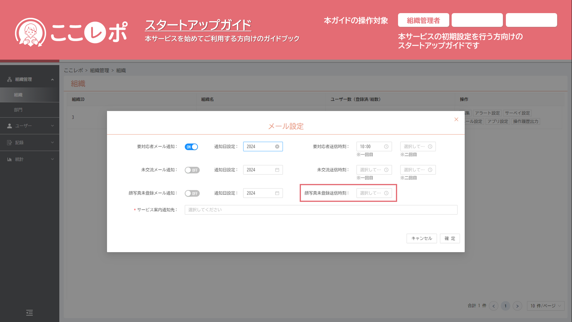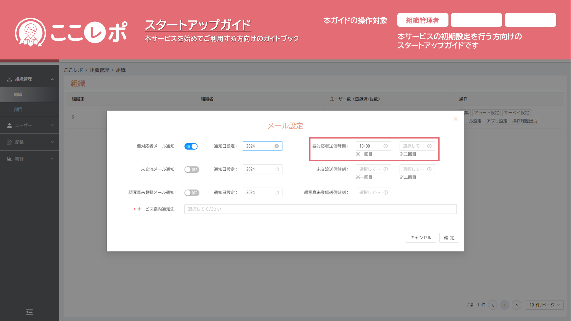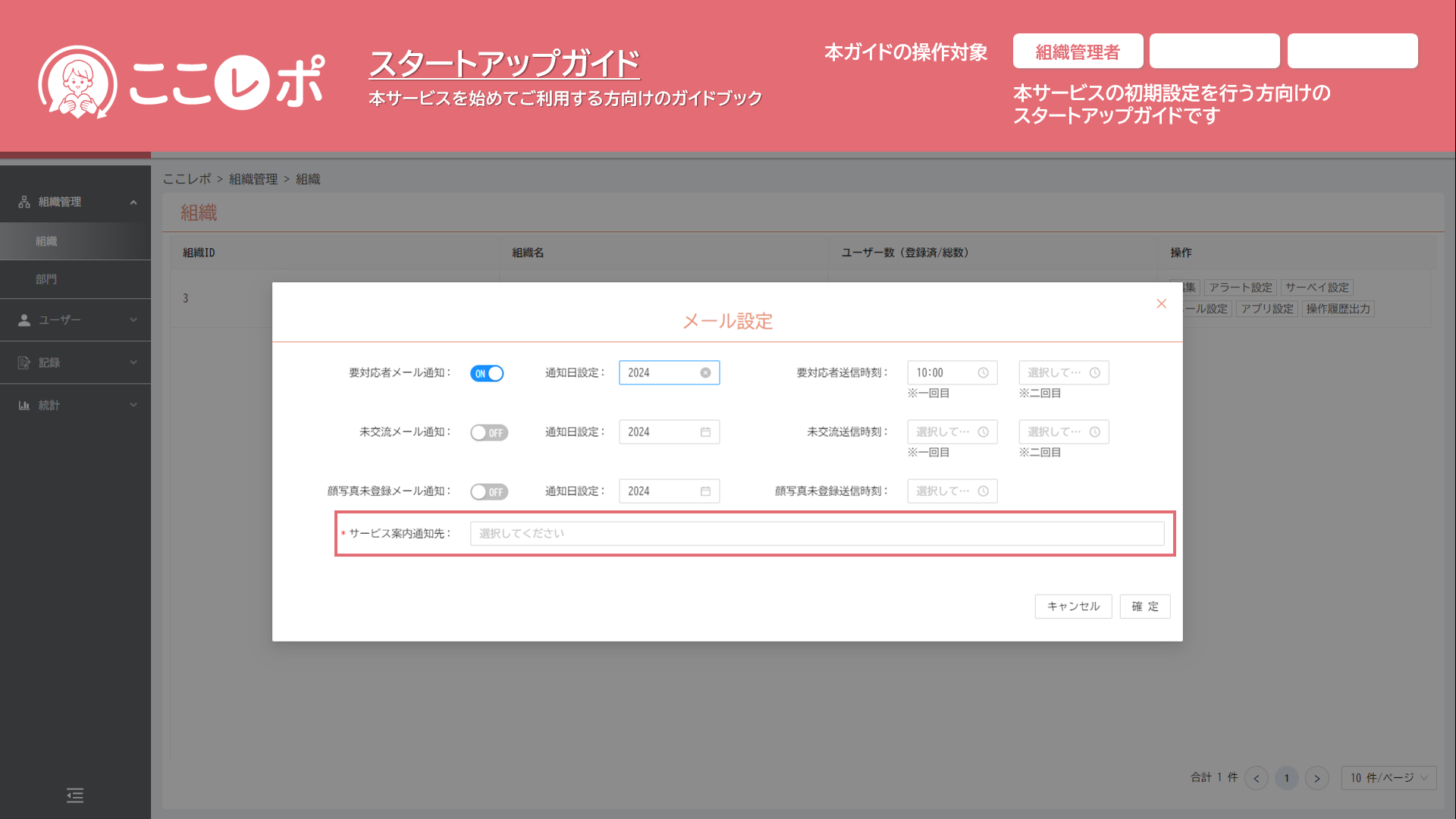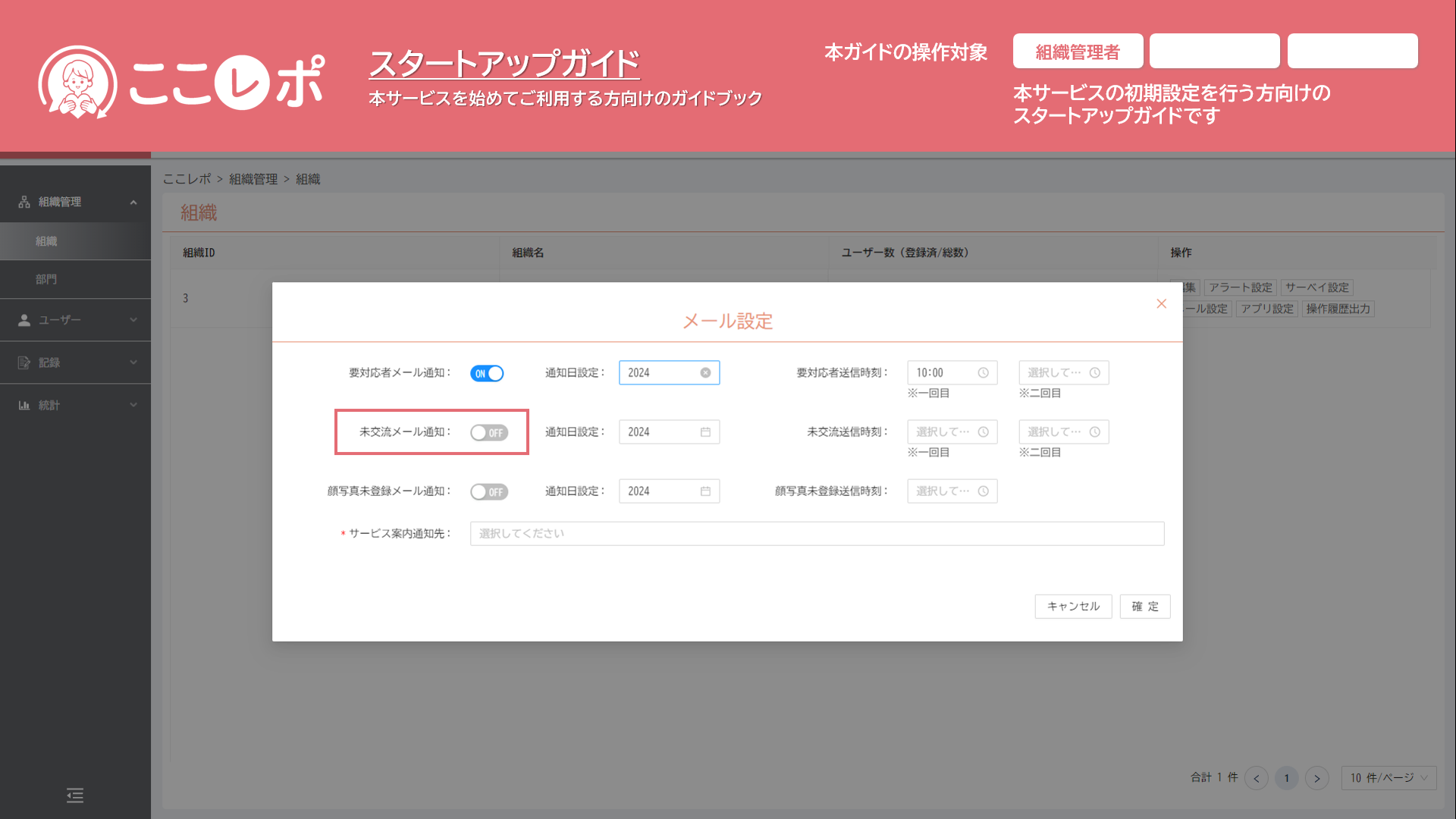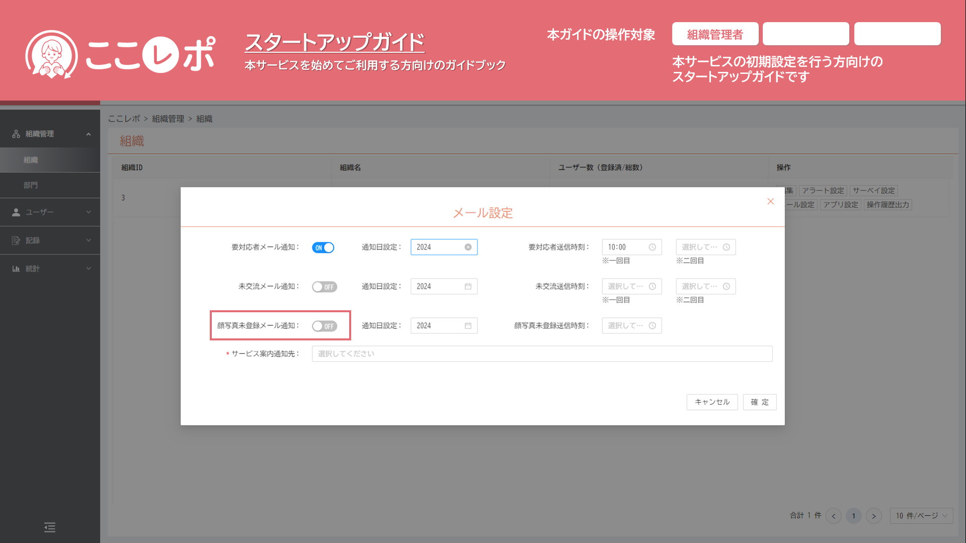 この設定は「組織管理者」として登録されているユーザーのみ操作可能です。