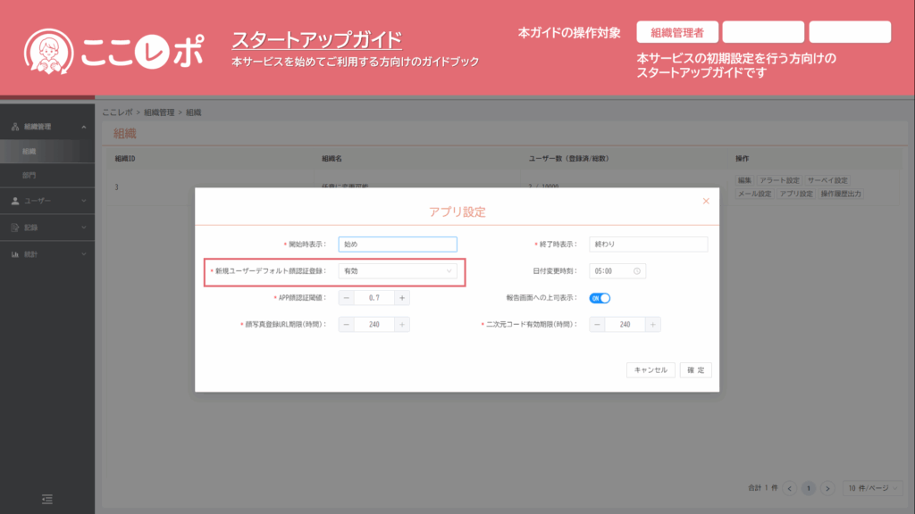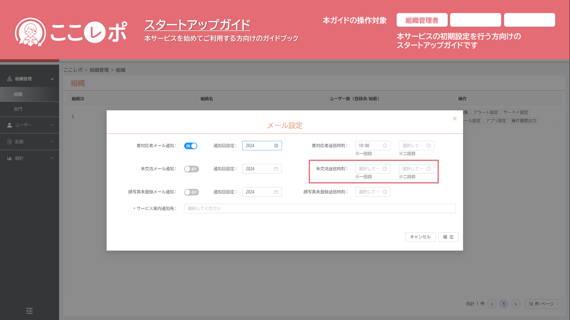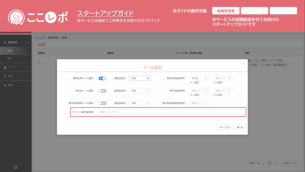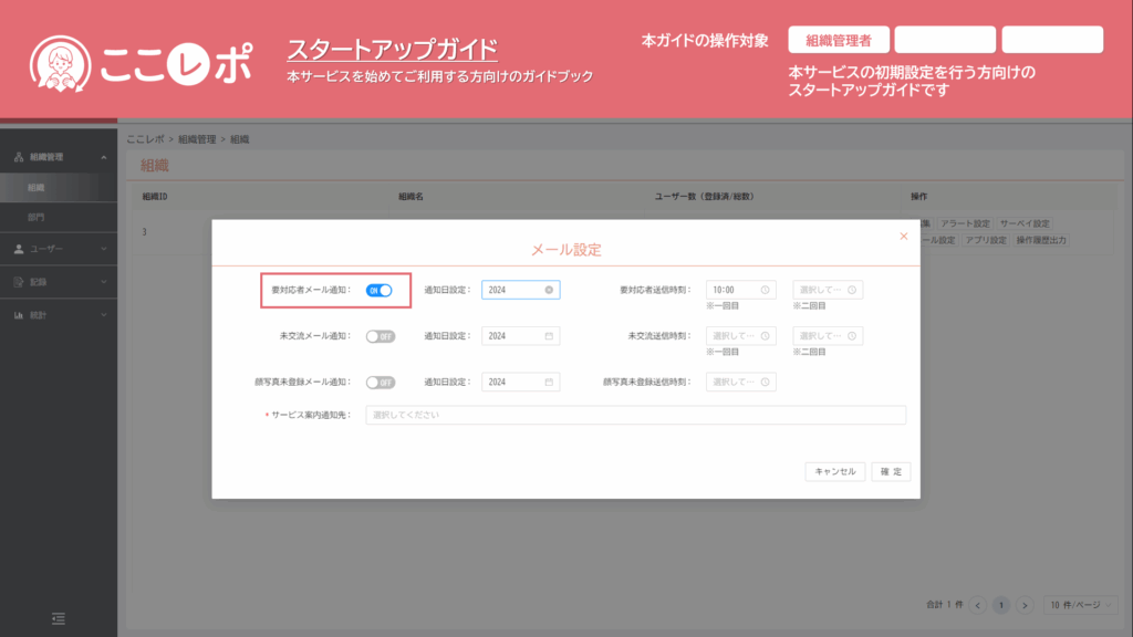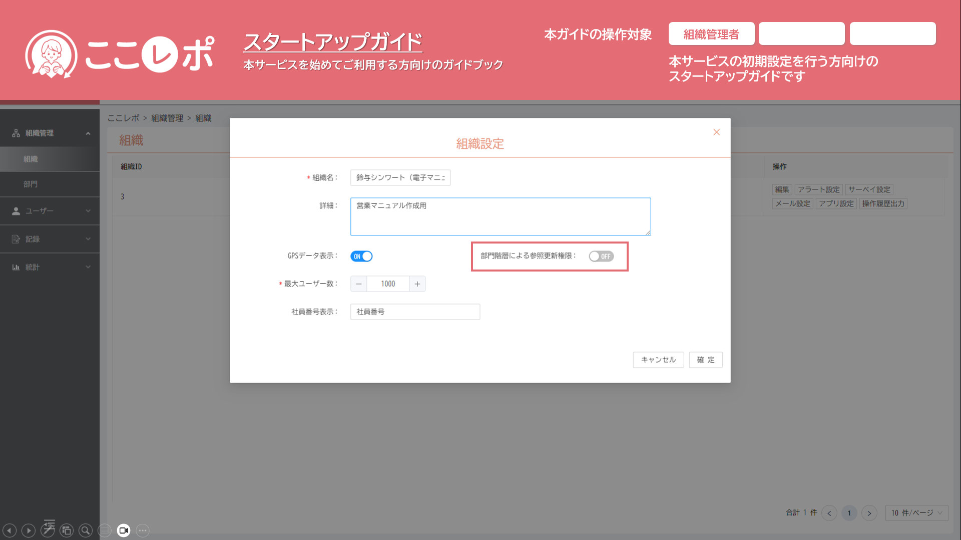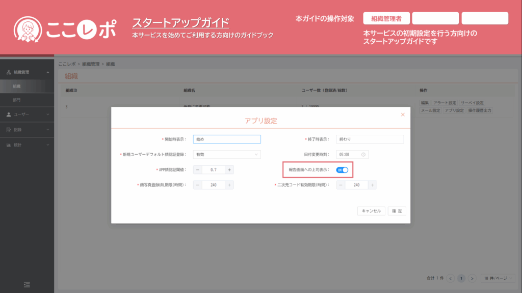 この設定は「組織管理者」として登録されているユーザーのみ操作可能です。
