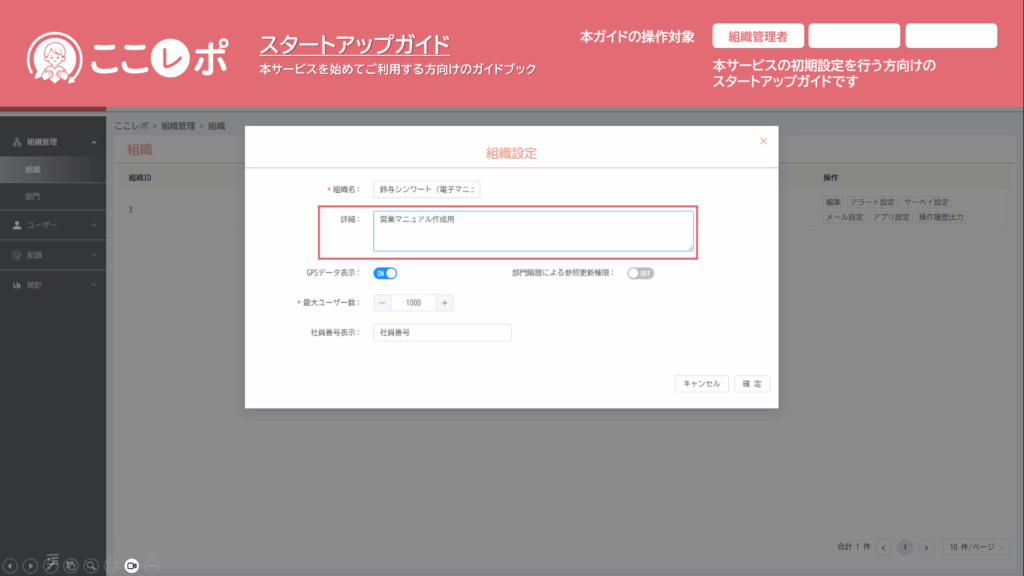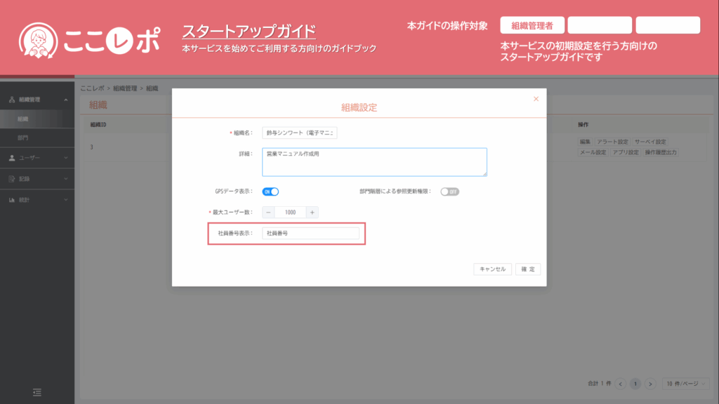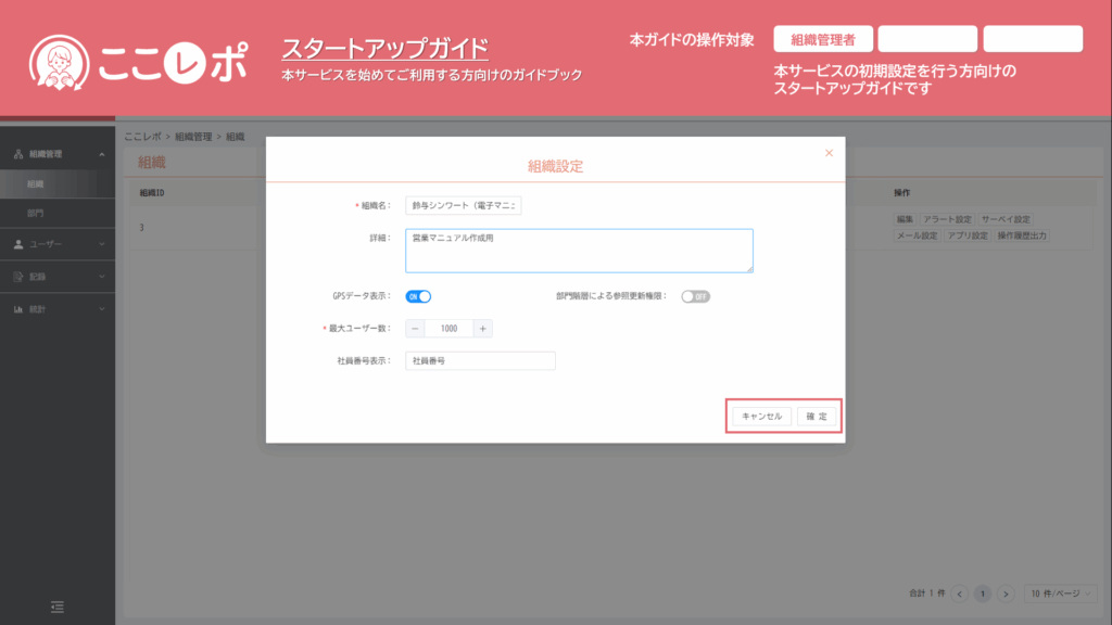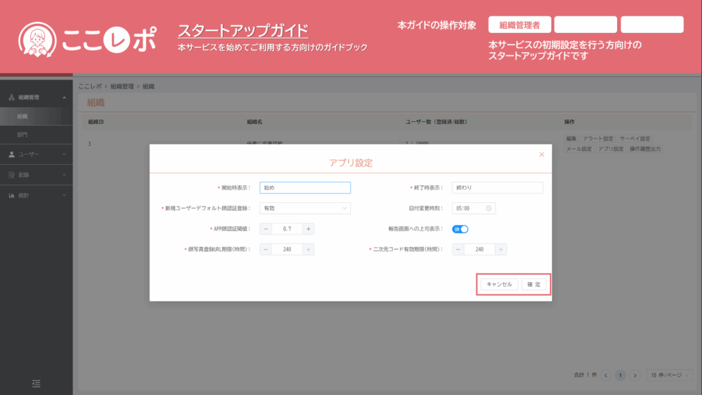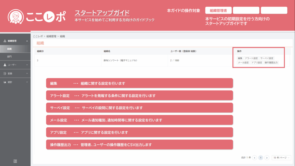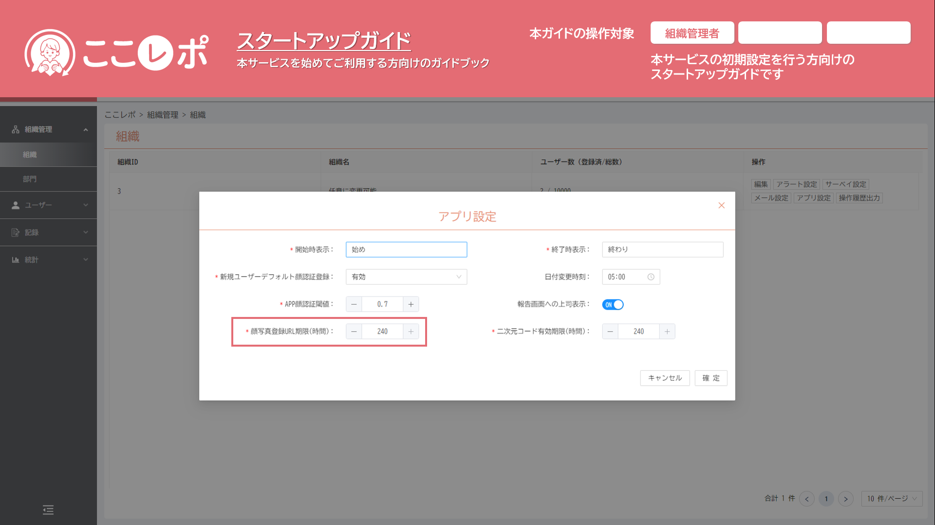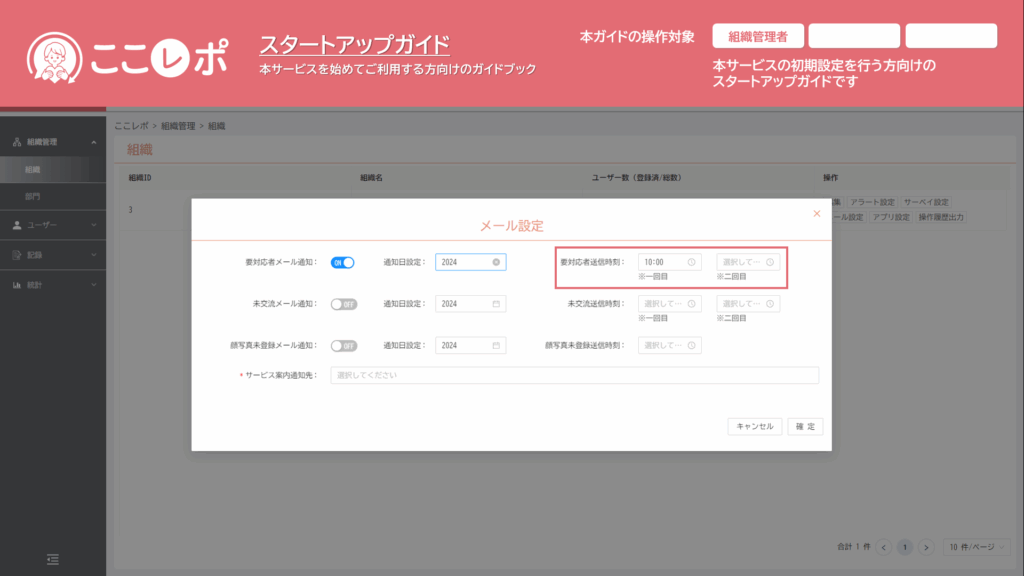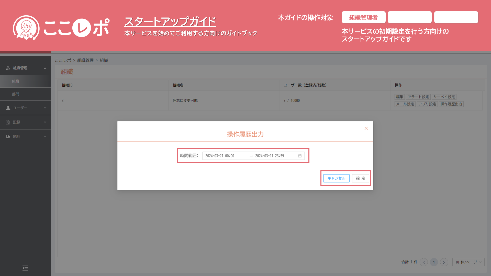 この設定は「組織管理者」として登録されているユーザーのみ操作可能です。