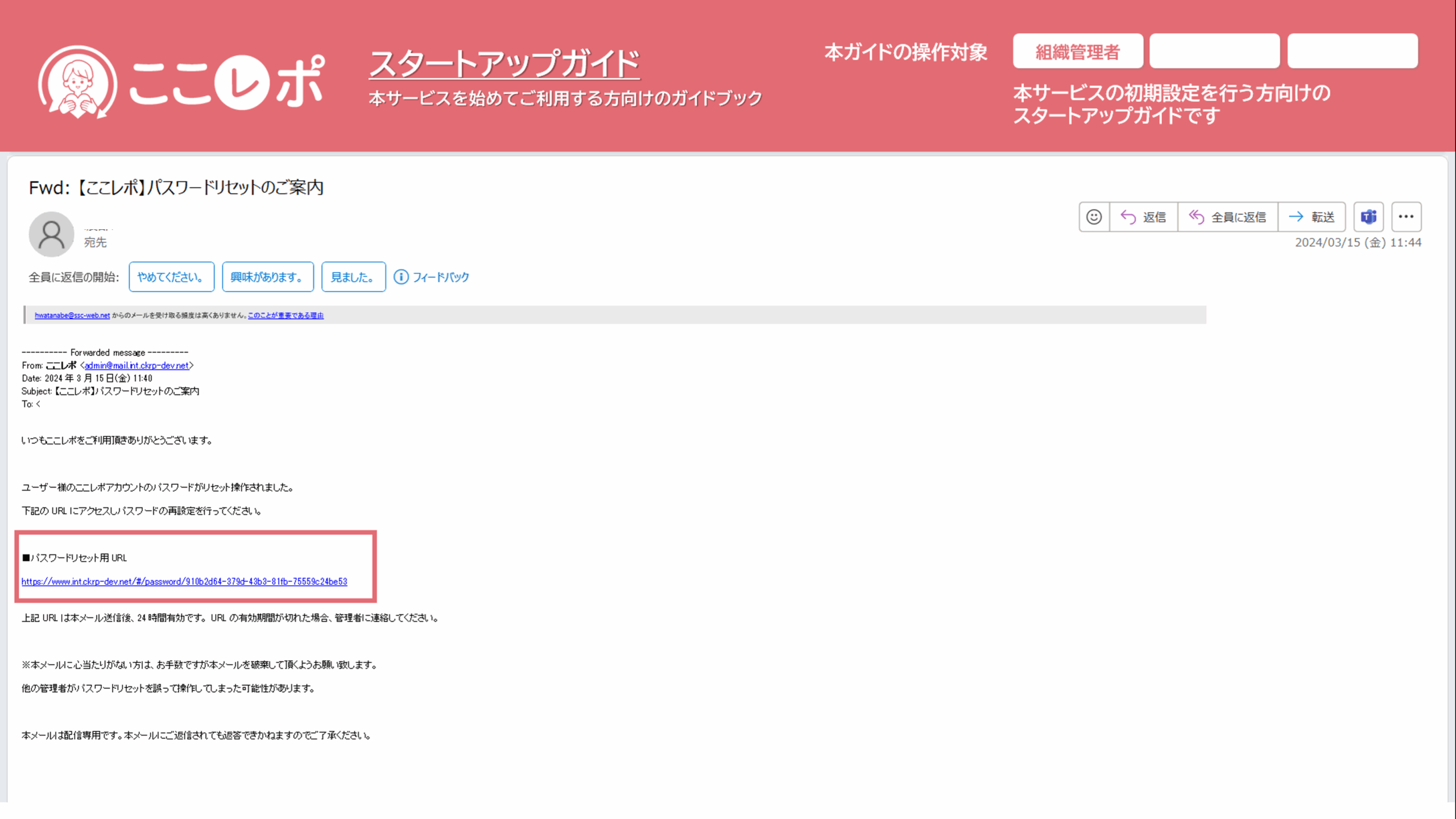 メールの文中に、ログイン情報、管理画面URLが記載されています。
