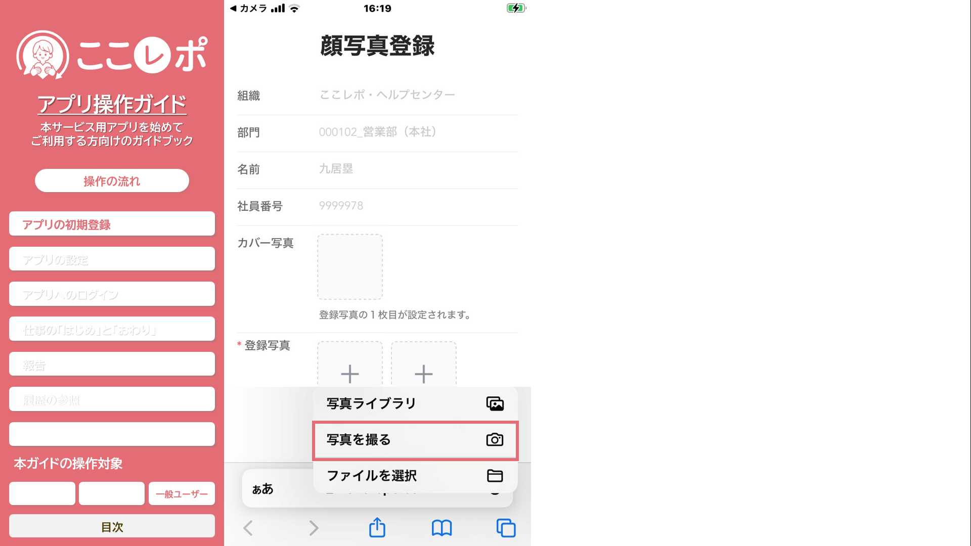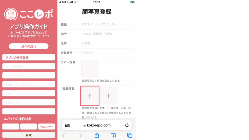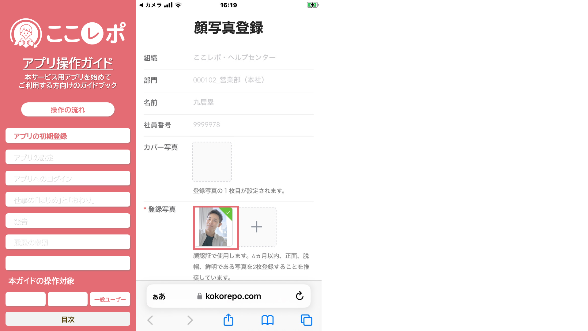 顔写真登録URLに、撮影した顔写真が表示されます。