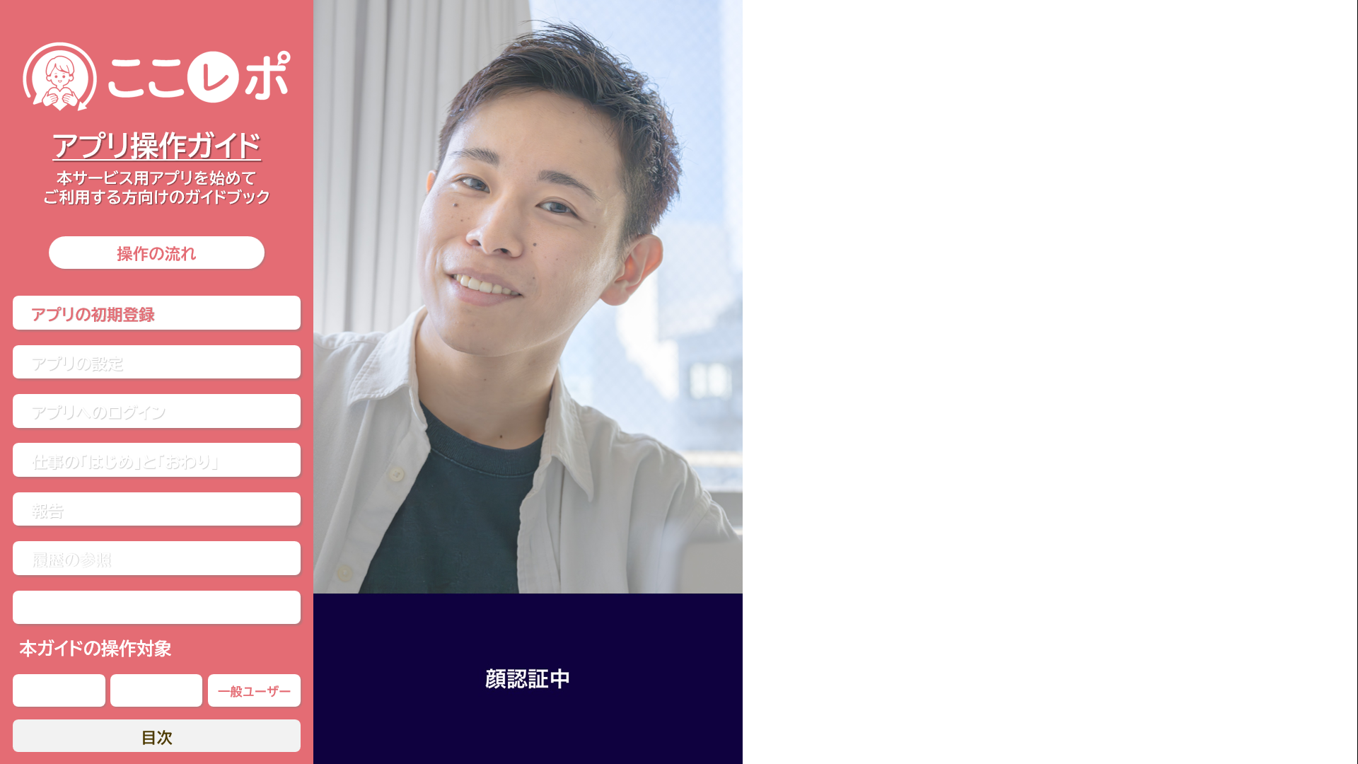 このマニュアルは、本サービス用アプリを初めてご利用される方向けのガイドブックです。顔写真の登録、アプリの初期設定、アプリの利用方法等についてご案内します。